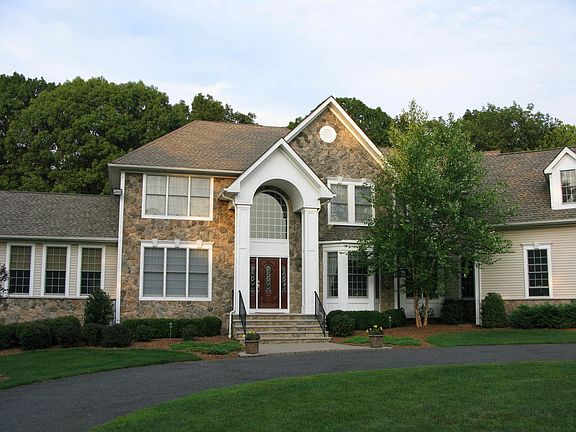 This majestic 15 room stone Colonial is nestled on over 5 acres of private, park like property with fenced in-ground pool and stone pool house. This elegant four Bedroom, three full and two half Bath home offers state-of-the-art amenities which include gleaming hardwood floors, crown moldings, cathedral and tray ceilings and two fireplaces. The gracious Foyer invites you to enter the Formal Living Room and leads one through French doors to the Conservatory with walls of windows allowing for nature to be enjoyed. The Formal Dining Room features chair rail molding, tray ceiling and piped music. The large open custom Kitchen is appointed with custom maple cabinetry, granite counters, center island with microwave and stainless steel appliances. The breakfast area opens to the 3 season Sun Room through glass sliding doors and leads to the patio which overlooks the property. A Great Room with cathedral ceiling and stunning stone faade floor to ceiling fireplace offers one a place to relax. Finishing this level is an Office with built-ins, a Den and Laundry Room which leads to the oversized three car Garage. The second floor offers a spacious Master Suite with fireplace in the Sitting area, large walk-in closet, luxurious Master Bath and balcony. Additional spacious Bedrooms, two of which are Jack and Jill sharing a full Bath and a third with a private ensuite full Bath are also featured. A huge playroom completes the second level. A full partially finished lower level offers one more living space. This exceptional home in move-in condition with a feel of country, yet is close to shopping and major highways, awaits the most discriminating buyer.