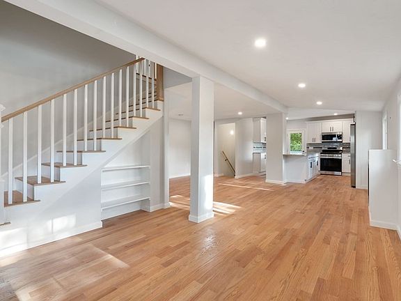 This beautifully renovated home in East Weymouth boasts 5 beds and 3 baths, with top-to-bottom updates throughout. Being just a couple blocks from the commuter rail and Jackson Square, this property is in a prime location! The open style floor plan is flooded with natural light and offers direct access to the private back deck, a great spot for al fresco dining. The ground floor includes the primary bedroom with en-suite bathroom, a second bedroom, full bathroom, living room and kitchen. The second level boasts two bedrooms and one full bathroom, while the basement level features a washer/dryer hookup and an additional bedroom that leads directly to the walk-out backyard.