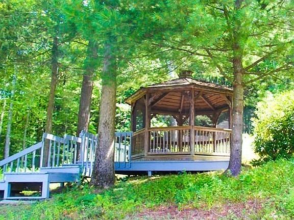 Custom built, one of a kind home. Many rooms and many options for bedrooms, an office, playroom, living rooms. Enter the impressive foyer and see the winding staircase. Large kitchen has several cabinets, tile floor and connects to both full bath, laundry room and another room which has an exterior exit. This room would be perfect for an office or bedroom. Step down living room and dining room with grand center chimney and custom mantel. Family room has wet bar and spiral staircase to balcony. Other rooms on the first floor are bedroom and room suitable for another office or bedroom - could be first floor master - with full bath and area for a hot tub. 2nd floor has huge master bedroom with large dressing area and other bedroom and walk in attic storage. The grounds consists of 5 plus acres, above ground pool, gazebo and garage with 2nd floor storage and workshop area. This home is a must see if you are looking for lots of space and an interesting design.