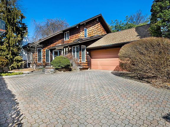 Absolute one-of-a-kind custom 3 BR, 2.5 BA multi-level expansive contemporary home with a cedar shake exterior. A bluestone walkway leads to a 2-story foyer with a custom front door surrounded by windows & marble floor that is open to the 2nd-story landing. The Foyer opens into a beautiful Great room with a cathedral ceiling, m asonry stone wood-burning fireplace with a raised hearth, and loads of custom Andersen casement windows welcoming in the sunshine. Gorgeous 3-season Sunroom with vaulted ceiling, custom oversized windows flanking back & side walls, ceiling fan, bluestone tile floor & custom paneled walls plus an atrium door leading to the rear yard. Gourmet Kitchen with solid custom cabinetry, Corian countertops, ss double wall oven, ss built-in cooktop range, ss dishwasher, built-in refrigerator, built-in double sink with custom window, ceiling fan, ceramic tile backsplash & floor. Dining Room off of Kitchen with hardwood floors, recessed lighting & 2 sliding glass doors leading to rear yard. First-floor office with triple casement window, custom molding & ceiling fan. Family room with vaulted ceiling with Velux skylights & ceiling fan, marble fireplace, hardwood floors, huge casement windows. First-floor powder room with custom pedestal sink & toilet & marble floor located off of the Foyer along with access to the partial Basement with a Laundry/ Utility room. The second floor offers a large open landing, a full hall bath with large custom vanity & tub/shower. Three large bedrooms including Primary Bedroom with full bath offering walk-in shower with ceramic tile floor & walls. 2 car, side Garage. Circular paver driveway, newer roof, heater & C/A. Gorgeous yard with a large storage shed. Bucolic Setting!