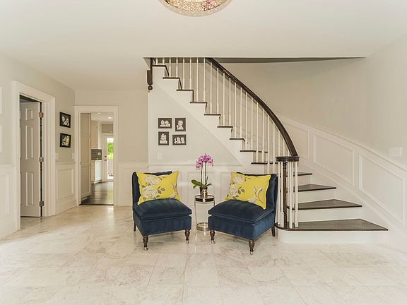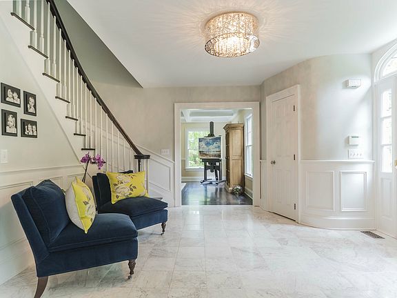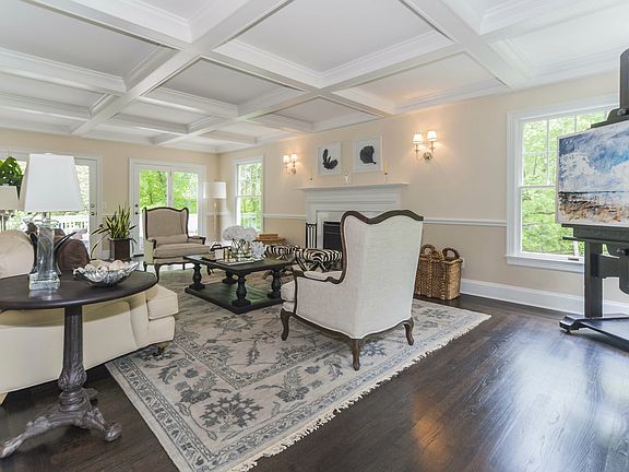 Set in over 2 acres of the private, waterfront community of Wilson Point next to Rowayton Village, this immaculate, center hall colonial has everything! Over 5,300 sq. ft., 5 bedrooms, 4 full baths, 2 half baths, Custom chef kitchen open to the family room with cathedral ceilings, study, dining room and a formal living room with coffered ceilings. In the basement there is a built-in music and surround speakers, gym, playroom and a wood paneled wet bar, that leads out to a lagoon style in-ground pool and spa.