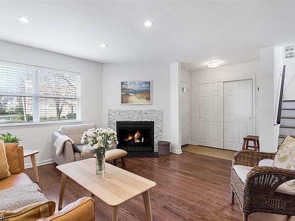 Large, bright end unit townhome with many updates. Foyer leads to well lit living room w gas fireplace w new (2017) stacked marble surround. Large dining room has new high hat lighting (2017) and sliders leading to deck. Kitchen has updated stainless steel appliances (all 2017), Kitchen-aid quiet DW and french door fridge, 5 burner GE profile gas range, and new (2017) high hat lighting. Updated powder room completes the1st floor. Wide bright staircase leads to 2nd floor. New (2017) wood laminate floors. 2 MBR's, both w cathedral ceilings and ceiling fans. MBR 1 has walk in closet, ensuite w tiled stall shower, under mount sink and linen closet. MBR 2 has large closet, ensuite w tub shower, under mount sink. Full basement (NEW 2018 Furnace and AC). Express bus service - arrive in NYC in 1 hr 15 min.