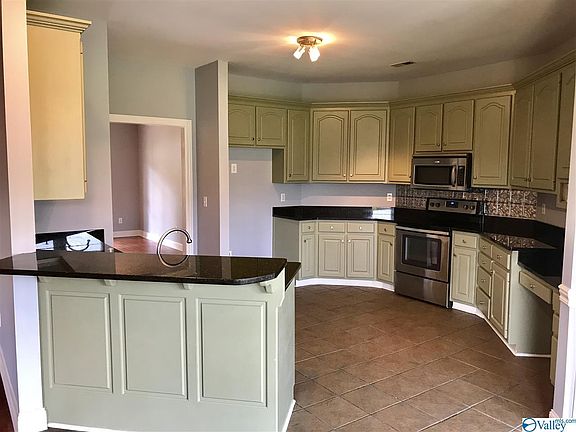 Immaculate 4 bedroom brick home on corner lot in Trinity. Split floor plan, loads of ceramic tile, tons of sage painted kitchen cabinetry, eat at bar, breakfast area plus formal dining, wood burning fireplace, glamour master suite with large walk in closet, open floor plan, granite countertops, fresh paint, mostly fresh paint, double attached side entry garage, fenced backyard with lovely landscaping. This is a must see.