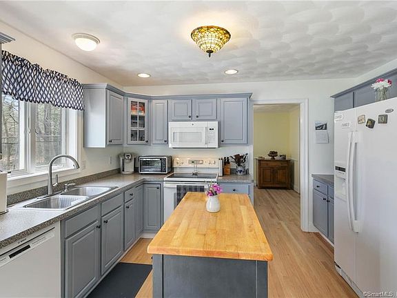 This property absolutely has it all! Direct access to walking trails right from your back yard, river access that opens up to a pond that is perfect for fishing, kayaking and canoeing, and a fantastic location in a beautiful neighborhood where you and the family can ride bikes, take walks, etc. Highway access is right up the road, as well as boat access to Webster Lake and Quaddick Reservoir/State Park! Not only that, but this home offers an oversized two car attached garage with a huge walk up attic area with potential to be finished into a recreation room, office, or simply used for storage. There is also another attached garage, front farmer's porch, rear deck, patio, fire pit, and an extended driveway alongside the garage where you can park your camper and hook it up to the outdoor plug. Inside this immaculate, extremely well kept home, you'll find a beautiful kitchen with a breakfast/dining area and sliders to the deck, formal dining room, living room, and a half bath with laundry. Upstairs there is a full bath and three bedrooms, one of which offers an en suite bath. Some of the many updates to this home include refinished and/or newer hardwood floors throughout, refinished kitchen cabinets, fresh paint throughout, new trex decking, and a new roof! Don't miss out on this gorgeous home in a picture perfect neighborhood, make an appointment for your showing today! * Offer deadline is Sunday 4/24 at 12pm. *Owner reserves the right to accept an offer at any time.