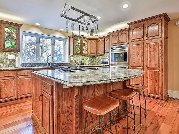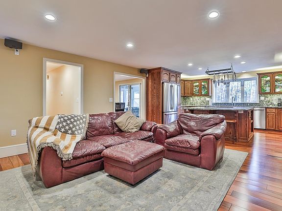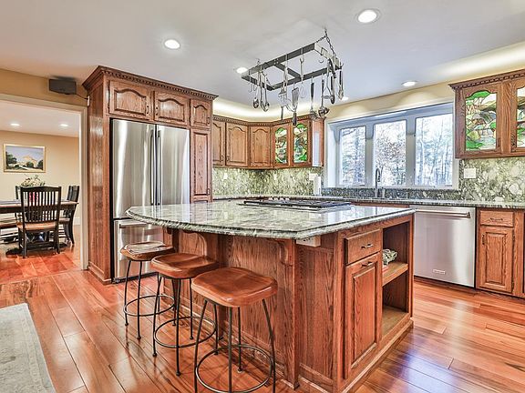 Welcome to one of the most sought after neighborhoods in Nashua. This four bedroom gambrel is complete with many exterior and interior updates. The roof, siding, cabana, outdoor fireplace and pool are all less than 4 years old. Beautiful cherry floors adorn most of the first floor. Open concept kitchen and family room boast a wood stove, granite counters and stainless steel appliances. Off of the kitchen area, you'll find a dining room with sliders to a cozy enclosed porch with access to the deck overlooking the exquisite back yard. Also on the first floor is an office/den with built-in shelves, a half bath with washer dryer hookups and a large front to back living room with wood burning fireplace. The second floor is accessible via two staircases. The stairs from the family room/kitchen take you to the homeowners suite, complete with gas fireplace, two closets, home office and beautiful bath with soaking tub and tiled shower. Down the hall, you'll find two more bedrooms and a full bath as well as another primary bedroom with walk-in cedar closet and bath. The basement is partially finished with a wood stove and a walk out. The utility room is huge and is also being used as a work out room. It includes a new Lenox heating system and A/C plus a whole house generator. The back yard is a dream. Salt water Gunite pool, waterfall, outdoor shower, stone fireplace and a pool house with bar, gas fireplace, TV & half bath. Seller is a licensed real estate agent. Showings begin 11/26.