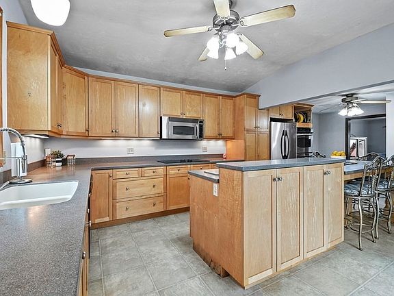 - Features: Ceiling Fan(s), Flooring - Laminate, Kitchen Island, Breakfast Bar / Nook, Exterior Access, Slider, Stainless Steel Appliances