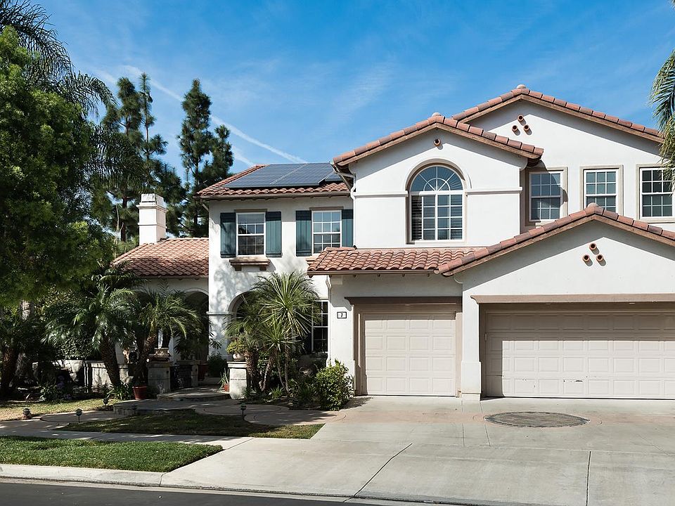 Your search for a home that truly stands above the rest will end at this exceptionally upgraded Irvine home. Every detail has been given special attention throughout, lending the residence a luxurious, custom-caliber ambiance. Revealing 6 bedrooms and 5.5 baths in approximately 4,512 square feet, the stunning contemporary masterpiece showcases high ceilings, inlaid travertine tile, a main-floor suite, main-floor office, a smart home system, a grand foyer with circular staircase, glass entry door, wood-look porcelain tile in select areas, and a fully owned solar power system that dramatically reduces utility bills. Cove ceiling lighting illuminates the living room, dining room and a great room with wood statement wall, built-ins, and contemporary fireplace. The fully remodeled designer kitchen hosts sleek, modern cabinetry, quartz countertops, an island, full customized pantry, and deluxe appliances including a Bosch dishwasher, Kitchen-Aid built-in refrigerator, and a Thermador hood, d