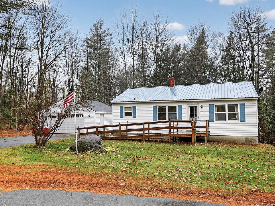 With a detached two-car garage, metal roof, and a peaceful rural-zoned setting, the home blends practical features with simple Maine charm.