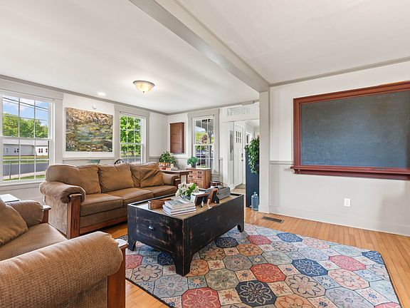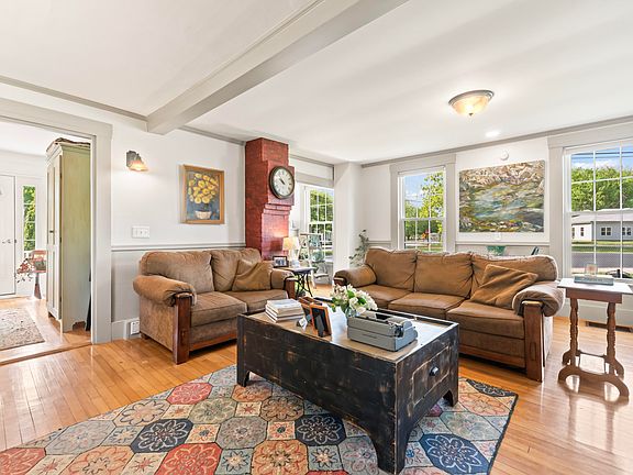 Welcome to 7 John Street, a charming farmhouse nestled in Goodwin's Mill's Village in Lyman, Maine. Situated on a corner lot, this delightful home includes 3 bedrooms, 2 full bathrooms, across 2,100 square feet of living space. The covered farmer's porch provides a perfect spot to relax, and the large windows allow an abundance of natural light throughout the home. The versatile first floor corner room could be used as a home office or den. This property also features an attached two story barn, once a shop for antiquities, that offers additional possibilities for a workshop or storage. Established organic gardens include culinary herbs just steps from the kitchen and raised bed vegetable gardens in the cozy side yard. Enjoy peace of mind with a stand-by generator that powers the entire house. A walk-in kitchen pantry, central vac, and central air are some of the extras that are included. Nestled close to commuter routes, this home effortlessly combines rural charm and ease of village living with modern conveniences. No showings until the Open House on Sunday June 2nd, (10:00am-Noon). Buy with confidence as a pre-listing building inspection has been done which will be made available to prospective buyers!