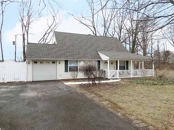 Exceptional, park like location on this Jubilee with wrap around porch. From the moment you walk in you will notice all the natural light. The Living Room has neutral walls, tile flooring and 3 large double hung windows. The kitchen has been remodeled and has lots of wood cabinetry, gas stove (propane), extra counter space, dishwasher, ceiling fan and sliders to back patio. Two good sized bedrooms on first floor, along with fully remodeled hall bath that has a large shower. The second floor features 2 more large bedrooms and a full, remodeled hall bath with tub/shower. There is Central Air, heater has been relocated to back of garage and oil tank is above ground. Maintenance free exterior is complete with vinyl siding, all windows replaced, newer garage door and BRAND NEW ROOF (2016). This pretty home is ready to go!