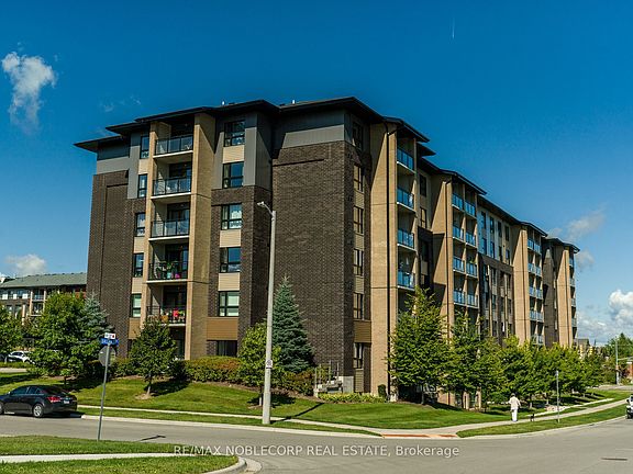 Welcome to this beautifully maintained end-unit condo offering a bright, open-concept layout and excellent privacy. Featuring modern laminate flooring throughout, two well-sized bedrooms with broadloom, and a private balcony ideal for morning coffee or evening relaxation. Enjoy the convenience of 1 parking space and a locker, plus access to building amenities, including a fully equipped gym and stylish party room . Located in a prime area near Hwy 401 and Hwy 6, this home is perfect for commuters and just minutes from shopping, dining, concerts, golf courses, and everyday conveniences. This move-in-ready gem offers comfort, space, and unbeatable location all in one!