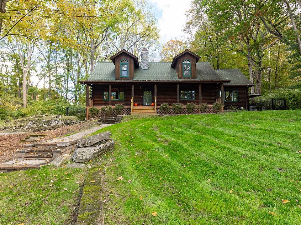 BEAUTIFUL LOG HOME AT THE END OF A CUL-DE-SAC SET BACK OFF THE STREET, OFFERING LOTS OF PRIVACY. WHAT A BEAUTIFUL SETTING! THIS IS TRULY A UNIQUE HOME. ENJOY THE SERENITY OF SITTING ON THE LARGE FRONT PORCH, THE SIDE PATIO, OR THE BACK DECK OVERLOOKING THE WOODED BACKYARD. LOTS OF OPTIONS FOR OUTDOOR ENTERTAINING OR JUST ENJOYING THE PEACE AND QUIET. THIS HOME IS ENHANCED WITH VAULTED AND BEAMED CEILINGS AND HARDWOOD FLOORS THROUGHOUT. THE LARGE LIVING ROOM OFFERS A BEAUTIFUL STONE FIREPLACE AS WELL AS A SLIDER GOING TO THE MASSIVE BACK DECK. ALSO, ON THE FIRST FLOOR IS A GUEST BEDROOM, FULL BATHROOM, FORMAL DINING ROOM, AND KITCHEN WITH AN AREA FOR DINING OR A COZY SITTING AREA FOR COMPANY AS YOU COOK. THE SECOND FLOOR HAS A LOFT AREA, BEDROOM, AND PRIMARY ENSUITE WITH JACUZZI TUB AND THREE CLOSETS. RECENT IMPROVEMENTS INCLUDE A FENCED-IN BACKYARD, HANDSCRAPED OAK FLOORS, A FURNACE, A/C CONDENSER, AND A HIGH-EFFICIENCY TANKLESS HOT WATER HEATER. YOU CAN ENJOY THE CONVENIENCES OF NATURAL GAS AND MUNICIPAL WATER. ALL OF THIS IS MINUTES TO SHOPPING, TRAIN, COLLEGES AND HOSPITALS. YOU DON'T WANT TO MISS SPECIAL HOME.,AboveGrade:2300,Basement:Interior Access,Below Grnd Sq Feet:700,EQUIPMENT:Carbon Monoxide Detector,Smoke Detectors,ExteriorFeatures:Landscaped,FLOORING:Ceramic Tile,Wood,FOUNDATION:Concrete,InteriorFeatures:Beamed Ceilings,Electric Dryer Connection,French Doors,Sliding Glass Doors,Washer Connection,Level 1 Desc:EAT IN KITCH, DR, LR W/FRPL, BEDRM, FULL BATHRM,Level 2 Desc:PRIMARY ENSUITE W/ 3 CLOSETS, BEDROOM,OTHERROOMS:Formal Dining Room,Foyer,Loft,ROOF:Asphalt Shingles,Unfinished Square Feet:700