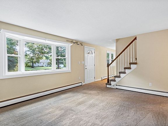 Meticulously maintained, over 1500 sqft, 4 bedroom Cape - just minutes to major highways and schools! Spacious living room with fireplace, bright open concept dining/kitchen area, full bath and a bedroom rounds out the first floor. Second floor offers 3 bedrooms and full bath. Lower level is partially finished for great flex space, complete with laundry area (new washer/dryer) and storage space! Beautiful wood cabinet kitchen with newer appliances including refrigerator/dishwasher. Freshly painted with new carpets. Sprawling backyard just under an acre with beautiful garden space. This home has so much to offer. No showings until Open House's on Saturday and Sunday October 16/17 - 11am-1pm.