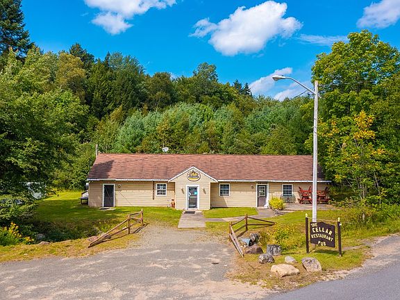 New Price::Here is a unique opportunity to create your Adk. home on a wonderful 2.3 acre wooded lot with a babbling brook. The well constructed Cellar Rest. was originally meant to be a home and evolved into a business. Now is your opportunity to take the spacious 1848 sq.ft. using your vision into a floor plan that suits your families needs. There is an abundance of space for bedrooms, dining, living etc. There is already a kitchen and two 1/2 baths in place. The outside is attractive with lawn, patio and brook. The paved driveway area provides plenty of space to construct a garage. DON'T MISS OUT on this opportunity. Come see for yourself the potential that awaits as a residence or a continued successful restaurant. Present owners have implemented a few successful business models, (ie) year round or seasonal