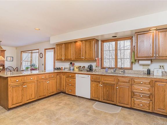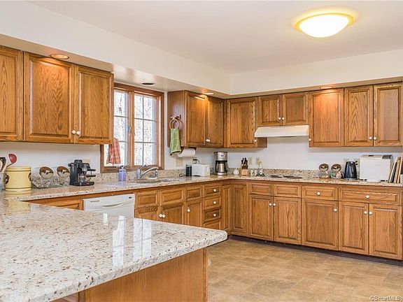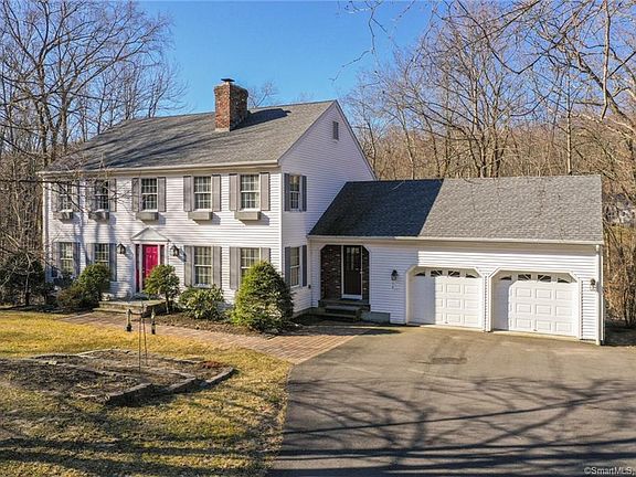 Spacious Colonial on expansive private 1+ acres. Welcoming two story foyer. Bright kitchen features granite counters and double wall ovens. Breakfast bar and large eat-in area bathed in natural light from the large bay window. Formal dining and living rooms boast hardwood floors. Hardwood floors continue to the main floor family room with floor to ceiling brick wood burning fireplace. Master bedroom with large en-suite full bath and fireplace. Three additional generously sized bedrooms complete the second floor. Full walkout basement with storage. Oversized attached garage. Beautiful level yard in a great walking neighborhood. King Street neighborhood on Danbury's west-side. Great NY commute.