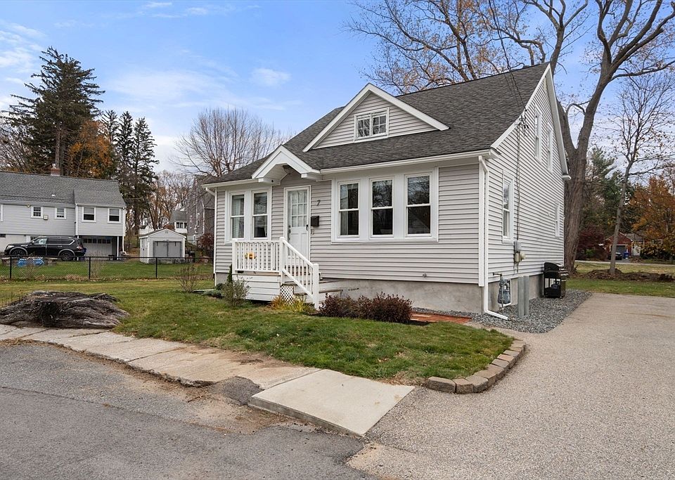 This charming, turnkey Cape is as inviting as it is practical—set on a peaceful street just seconds from downtown. With newer siding, windows, and a lovely patio, the curb appeal is undeniable. Inside, the flexible floor plan offers the option of a first-floor bedroom and full bath, ideal for guests or single-level living. A welcoming front room serves beautifully as a home office or mudroom, opening to a light-filled living room with handsome built-ins, columns, and generous natural light. The dining area flows seamlessly into an expansive, nearly new kitchen featuring stainless steel appliances, abundant cabinetry, ample counter space, and a large pantry. Upstairs, two comfortable bedrooms and a second full bath complete the picture.Out back, enjoy the new patio, level yard, and handy storage shed. Additional updates include a newer furnace, lighting, blinds, chimney work, sump pump. Truly move-in ready with timeless Cape charm in a prime location