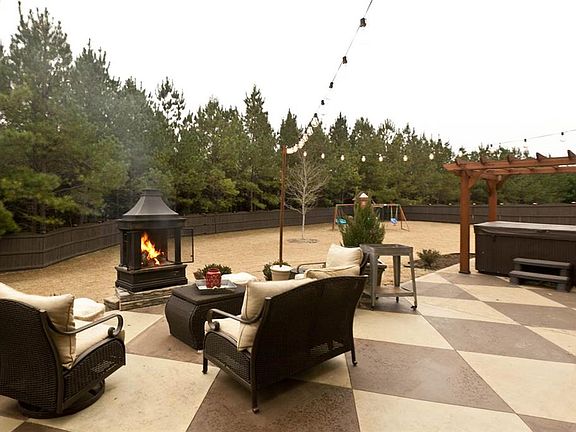 Welcome to your gorgeous new home 7 Knob Creek Court Easley South Carolina! Airy Springs is an exquisite and established gated community with a community pool your family is sure to enjoy in the summer. You will find this lovely home nestled away in the back of a cul de sac which provides all the privacy you need for enjoying your large backyard. As you pull up notice the custom stone and brick accents, a theme that is carried throughout the home with three fireplaces. As you step in the front doors you'll be welcomed in to a spacious great room with a soaring two story stone fireplace that provides a great focal point. Fireplace is gas wood burning. This home features large windows which let in an abundance of natural light. Super tall ceilings makes the great room space feel even more open. The great room opens up into a fantastic kitchen which is sure to be a gathering spot for family and friends. In the kitchen you'll find a second stone fireplace where you can relax in the mornings and have a coffee in the eat-in kitchen and look out on to the private backyard. The kitchen features a large island with miles of granite countertop as well as a walk-in pantry, gas stove, and plenty of beautiful Cabinetry. Step out back and you'll find an enormous stained concrete patio space the length of the house and a large private backyard with custom 6ft privacy fence. The patio has enough space for a dining area, a sitting area with a fire, and a grill area ,and a hot tub underneath a pergola. This is the ultimate space for outdoor entertaining. The sellers went above and beyond to upgrade this home and make it perfect for entertaining. In the elegant dining room you'll find wainscoting and molding. A sunroom off the back side of the oversized great room makes a great office Space. The downstairs also features an additional half bath and a guest Suite complete with its own bathroom, perfect to give your guest their own space. Upstairs you'll find a HUGE master bedroom comp