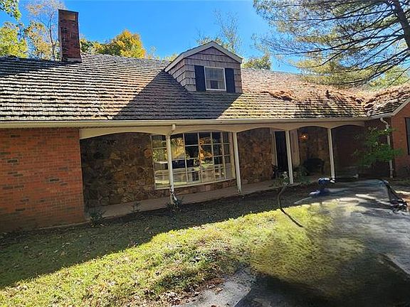 This is a beautifully built home in a great location sitting on 4.86 acres. Currently needs quite a bit of TLC (a roof has been quoted) and repair but could be gorgeous again. It is priced accordingly. As you enter the circle paved drive, this one sits off the main road perfectly. There is a 2 car garage on the east side of the home. Walking into the grand two-story foyer, your breath is taken away. To the left is a formal living room with a wood burning fireplace and from there you enter the formal dining room. If you go to the right, you will find a half bath, the large eat-in kitchen and the washer/dryer is in the closet off the kitchen hidden behind doors. From there you can enter the large den/family room. Two bedrooms are at the end of the hall and another full-bathroom. There are several entrances to the courtyard in the back of the home where you find nothing but serenity and peaceful woods. Upstairs there are two very large bedrooms (one has a fireplace) and 2 more bathrooms. A full basement gives a lot of storage. This one is priced for it's updating and repair needs. The owners of this home had it built to their specifications. It was quite the showpiece home in 1975 when built. Come and make an offer on this one. The sellers have passed on and it's time for this one to be brought back to it's intended glory.