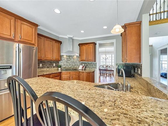 Impressive 5 bedroom 3.5 bath Colonial with sun-drenched open floor-plan and quality upgrades and custom finishes throughout. You will be greeted by the stunning two story foyer, open staircase and grand two story Great room with gas fireplace. Spacious eat-in kitchen featuring handsome maple cabinetry, top of the line stainless steel appliances, travertine back-splash and granite counters including a granite topped breakfast bar with seating. Sought after first floor master bedroom en-suite with spa-like attached bath. 2nd floor includes 3 generously sized bedrooms, large bonus room currently used as 5th bedroom. Roomy full bathroom with granite double sink vanity and tile flooring. Professionally finished lower level adds an additional 800 sq. ft of living space and includes a third full bath, spacious rec-room, separate guest room and ample storage. Perfect for AuPair quarters or multi-generational living. Enjoy the gorgeous year long views on the party sized Trex deck overlooking private 1-acre lot set on quiet cul-de-sac of custom homes. Central air, central vac, in-ground irrigation, and home security systems.