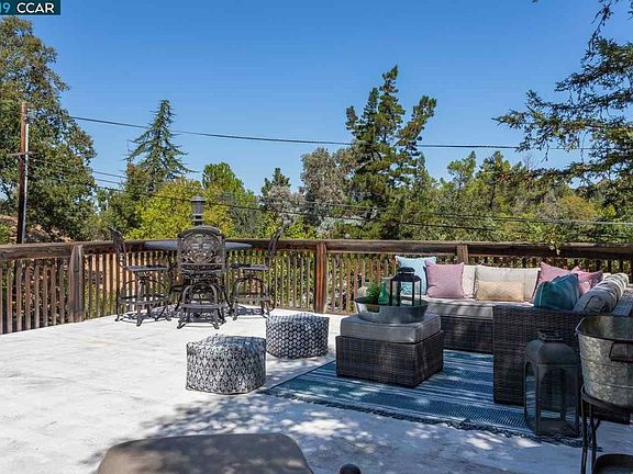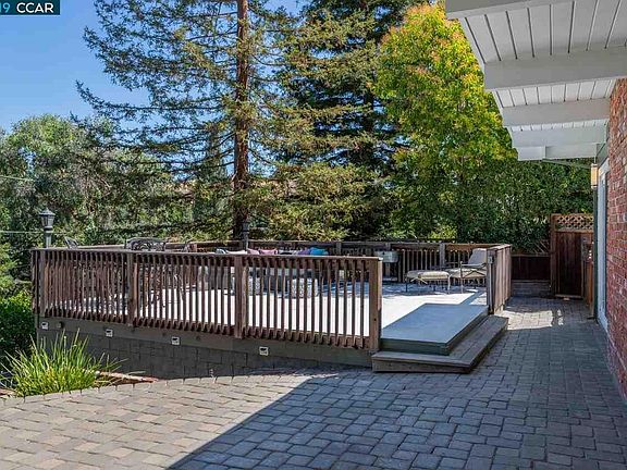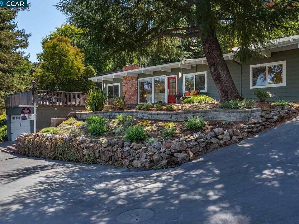 Extensively remodeled Mid-Century modern appeal with wood beam ceilings located in highly desired and sought after Lakewood community nestled in the heart of Walnut Creek adjacent to Shell Ridge open space. Quite setting on a privet lane. Dual pane windows throughout, state of the art "GREE" ductless HVAC system. Updated kitchen with waterfall island, custom cabinets, Calcutta stone counters, stainless steal six burner DCS gas range & oven and matching DCS refrigerator. Newly added indoor laundry/mud room with glass door access to backyard. Open great room, kitchen and dining area with oversized windows and sliding doors to create an open feel with the outdoors and access to front deck. Remodeled master bathroom with custom tile shower with bench. Multiple lounging areas and patios. large rear yard/lawn with terraced waterfall & views of the Shell Ridge & community of Lakewood. 4th bedroom is best used as a study/nursery.
