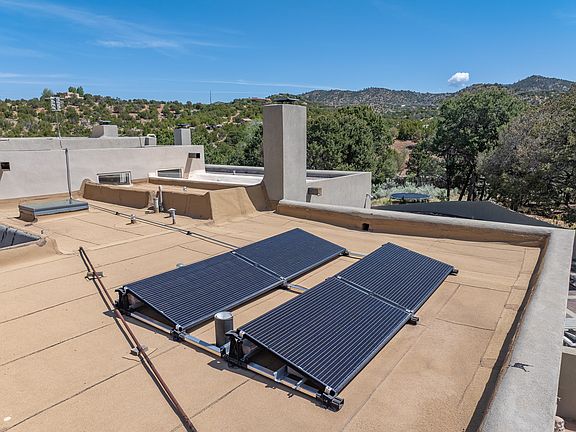 Modern Santa Fe Retreat with Pool, Hot Tub & Sauna on 1.9 Acres. Discover contemporary comfort just off Old Santa Fe Trail. This beautifully designed 4-bedroom, 4-bathroom home offers approx. 3,900 sq. ft. of stylish living space on 1.9 private acres—just 10 minutes from the Santa Fe Plaza. Enjoy a light-filled, open-concept living and dining area with large picture windows that frame views of the expansive backyard, complete with a patio, swimming pool, and hot tub—ideal for entertaining or relaxing under the New Mexico sky. The gourmet kitchen features high-end appliances, plenty of natural light, and a modern layout perfect for cooking and gathering. The spacious primary suite flows into a versatile open area—ideal as a family room, home office, or art studio. Downstairs, three guest bedrooms share a luxurious full bathroom. At the end of the hall is a separate fully finished basement perfect for a family room/game room which includes ample storage space. Adjoining the family room is a cedar sauna and ¾ bath for spa-like relaxation. The 1.9 acre lot is adorned by a pinon forest with serene walking trails which connect to the trails of the Mountain Cloud Zen center and the foothills of Santa Fe. This neighborhood boasts the fastest internet in Santa Fe. Whether you’re looking for a full-time residence with the perfect work from home environment or a serene escape, this home blends modern amenities with the peaceful charm of Santa Fe living.