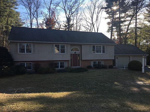 Raised Ranch style home in desirable Hadley neighborhood on quiet cul-de-sac. Home offers 3 bedrooms and 2 baths. Large family room with high vaulted ceilings was added on to the house. Spacious kitchen has granite counters with eat at counter and beautiful hickory cabinets with lots of storage space. Hardwood floors in most of the house. Mini-split air conditioning to keep cool in the summer. Large dry basement with high ceilings for a great workshop and plenty of storage space. 2 car attached garage. Low maintenance exterior with vinyl siding and brick veneer. Private backyard with beautiful composite deck to enjoy during the summer. Location is close to everything with low Hadley taxes. Schedule a private showing today.