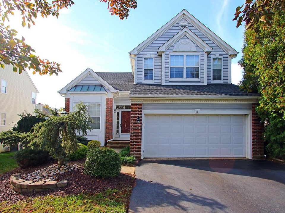 Pristine, brick front, 4 bedroom Bristol Model, maintained impeccably by the original owner. This home feature a large master bedroom on the first floor, gorgeous spa like master bathroom and spacious walk in closet. Upon entering you are invited by neutral decor, vaulted ceilings for an impressive entry, wide plank hardwood flooring and windows galore. Half bath renovated with beadboard walls and charming character. Large bright kitchen, SS appliances, pella sliding glass door leading to large back deck and fully fenced yard. Juliete balcony overlooks the first floor. Three very spacious bedrooms upstairs & renovated full bathroom. Basement is light and bright with high ceilings and walkout ready for your finishes. All this and a new roof!! Welcome home!