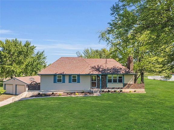 If you are dreaming of a beautifully updated home with charm, you found it! Home is nestled on just over an acre with inviting curb appeal. Main floor living room with cozy, brick fireplace stretching floor to ceiling, wood beam detail, and natural light. Kitchen complete with charming cabinets, new appliances, undermount sink, and quartz countertops. One room over you will find the dining room of your dreams with windows overlooking the peaceful lake, and deck access. Make your way down the hall to find two generous size bedrooms and an updated hall bath with double sink vanity, tiled shower with niche detail, and additional storage. Owner's Suite offers a tray ceiling with fan, along with updated bathroom. Head downstairs to discover the perfect entertaining space with spacious rec room, second fireplace, extra storage nooks, guest half bath, and walkout basement. So many updates throughout! Step outside and imagine a relaxing evening looking over the calm lake from your spacious, shaded deck. Expansive backyard oasis with mature trees and picturesque lake view, covered deck, and patio providing the perfect space to escape the hustle and bustle of everyday life. Deep attached two car garage, plus an additional detached two car garage provides ample storage and room to explore hobbies. Conveniently located off paved roads and hwy 169. The perfect blend of style and comfort will have you feeling right at home!