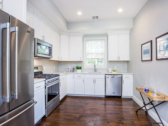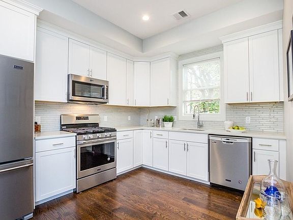 Bright, spacious and updated apartment available just in time for autumn! This 3 bedroom, 2 bathroom unit offers high ceilings, recessed lighting in every room, hardwood floors throughout, in-unit laundry, updated kitchen with quartz countertops and stainless steel appliances and so much more. Oversized, covered deck located just off the living room. Primary bedroom has en-suite bathroom and closet with custom shelving. Located near the base of Fort Hill in the Moreland Historic District, this property sits on a dead end street. Note: third bedroom is on the smaller side and is ideal for home office! This property won't last long so book your showing today! Note: photos taken before prior tenant moved in. Some photos are virtually staged. Owner pays water.