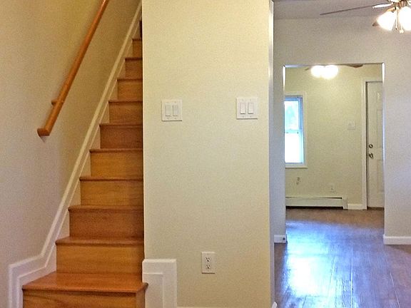 7A - Two bedrooms, one full bathroom (2nd fl.) and one half bathroom (1st fl.), living room, dinning room, eat in kitchen, laundry room, cement patio, fence-in backyard, fire pit, off-street parking for four cars. Easy access to major highways and Philadelphia transportation. One year lease with 1 1/2 mo. security deposit. Tenant pays for all utilities excluding sewer.