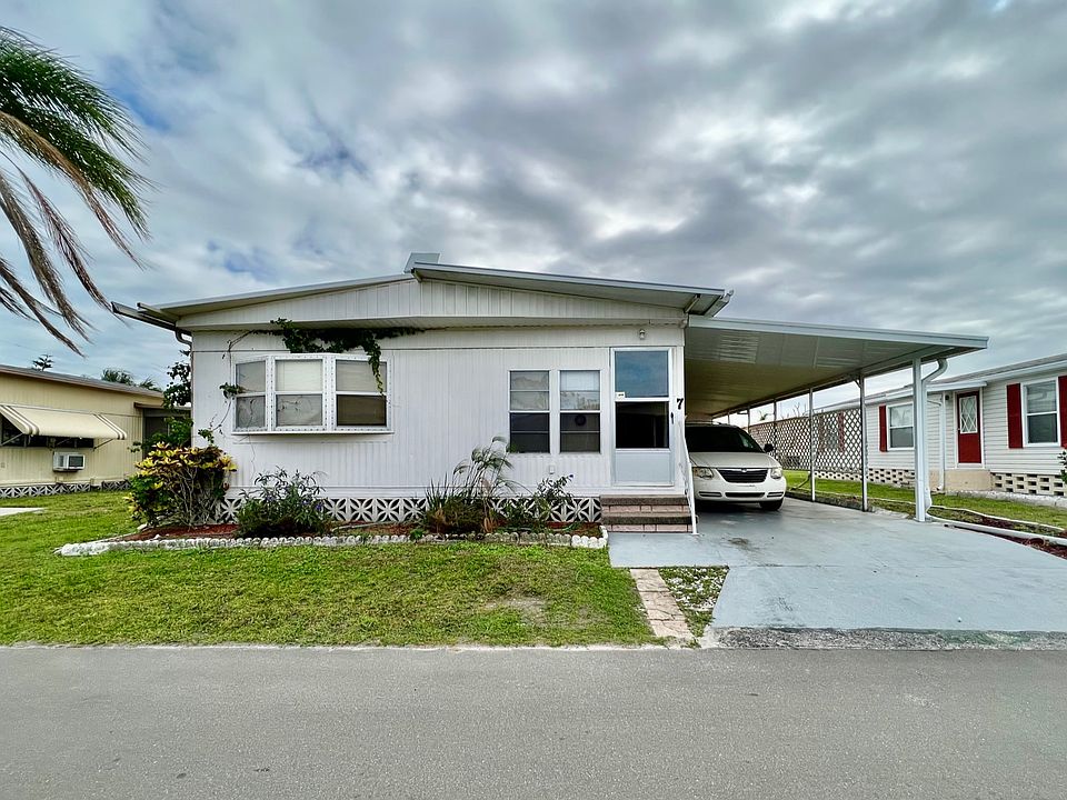 Investment Opportunity! This true double-wide home has good bones and features 2 beds/2 baths, an open-concept kitchen with eat-in bar oversees the dining area that leads into your living room - perfect for entertaining! Plenty of natural light, handy built-ins, and walk-in closets! With some TLC, this will make a great residential or flip home! Located in Coach House, an up-and-coming active 55 community with a rural feel and nice proximity to restaurants, shopping, medical facilities, beaches and more!. Enjoy the Tiki Huts near the pool, the putting greens and new dog park! Current renovation plans for the park include new amenities, refreshed landscaping, refurbished clubhouse, gated community etc. Golf Cart is included in the price. Call TODAY to schedule YOUR Showing!