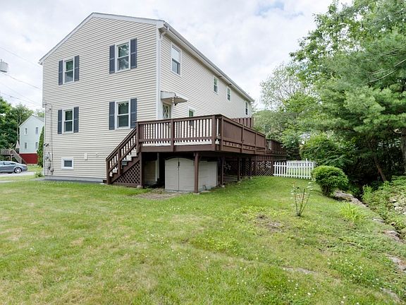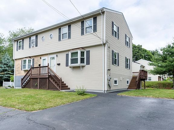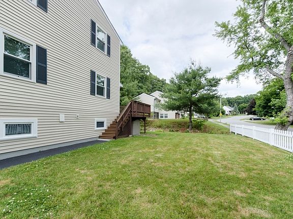Spacious single family attached home offering large rooms plus additional space in the finished lower level. Sun filled living room with a bay window, eat in kitchen with a door that opens to the 25' x 10' newly redone deck with composite boards. Conveniently located is a half bath with a washer and dryer on the first level. Two bedrooms are located on the second floor with a separate zone of heat. The finished lower level features a family room or office, this space is heated by baseboard electric, the second room is perfect an exercise area or storage. Newer roof and windows, well maintained, move in ready, exterior is vinyl sided for easy care. Nice flat corner lot in this quiet location within minutes to shopping, local highways, schools and conveniences.