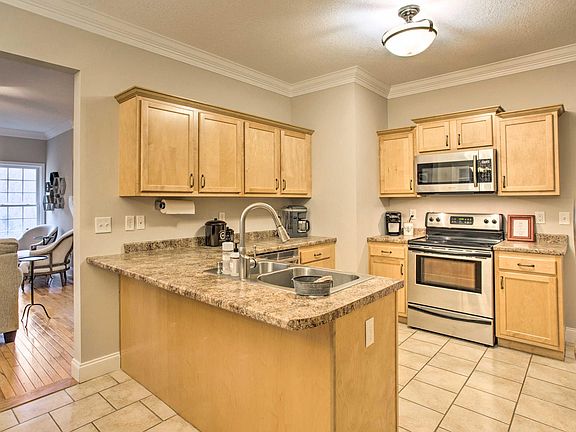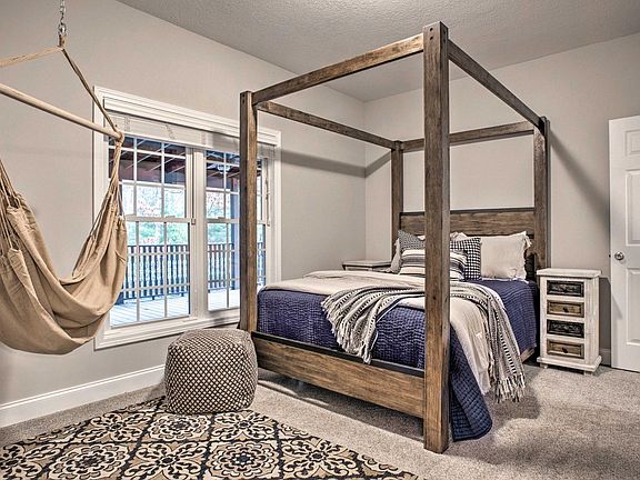 Welcome to 'The Hive,' a spacious, family-friendly 3,300-square-foot home with plush furnishings and a fenced-in yard! This upscale 6-bedroom, 3.5-bathroom vacation rental in Asheville is the perfect spot for families or work associates looking to work, visit, or live in beautiful Asheville, North Carolina. Prepare meals in the full kitchen and stream shows on the Smart TV. Blow off some steam at the end of the day with a rousing ping pong tournament or a few fun zips down the zipline. This peaceful 4-house neighborhood sits on a private road, less than 9 miles from major sites like The Biltmore Estate and Downtown Asheville! There are four bedrooms upstairs and two bedrooms downstairs, with a master on each level! Bedroom 1: Land of the Sky Bedroom Queen Bed, Twin Day Bed (master on upper level) Simply elegant with rich, dark wood furniture contrasting delicate white and powder blue bedding. Large walk-in closet will accommodate a pack-n-play Bedroom 2: Honeybee Bedroom Queen Bed (upstairs) Walk-in closet will accommodate a pack-n-play. Bedroom 3: Hillside Bedroom Queen Bed (upstairs) Lime green farmhouse metal bed situated among weathered barn grey furniture. Walk-in closet will accommodate a pack-n-play Bedroom 4: Vanderbilt Bedroom Queen Bed (upstairs) Stately high tufted upholstered headboard Bedroom 5: Lavender Sunset Bedroom Queen Bed (main level) Lavender accents Bedroom 6: Starry Night Bedroom Queen Bed Navy blue and burlap decor creates a down-to-earth setting Walk-in closet will accommodate a pack-n-play Additional Sleeping: -Queen Air Mattress -Twin Rollaway Bed INDOOR LIVING Wall-to-wall windows with forest views, sectional sofa, gas fireplace, flat-screen Smart TV (Netflix, Hulu, Amazon Prime), 2 dining tables, ping pong table, 4 walk-in closets, jetted bathtub KITCHEN Fully equipped w/ cooking basics, stainless steel appliances, breakfast bar, Keurig & drip coffee makers, refrigerator w/ icemaker, dishwasher, tableware (plates, glassware, stemware & utensils) OUTDOOR LIVING Monkey bars, zipline, picnic table, large screened-in back deck GENERAL Linens/towels, free WiFi, front load washer/dryer, central heating & A/C, complimentary toiletries, hair dryer, trash bags, paper towels, iron/board PARKING Garage (2 vehicles), driveway space (4 vehicles), gravel parking pad (2 vehicles) Fully furnished, including sheets and towels. Utilities included.