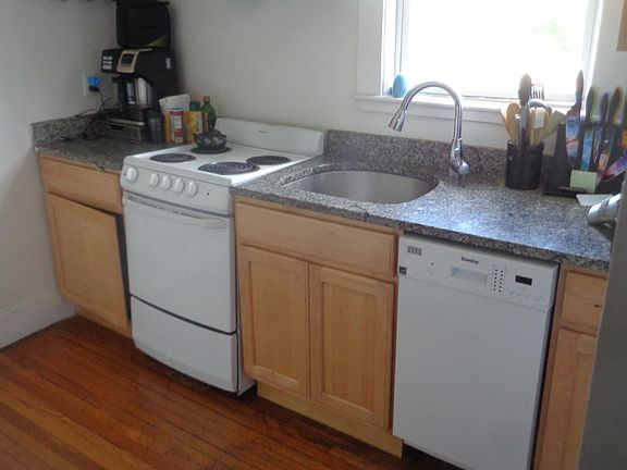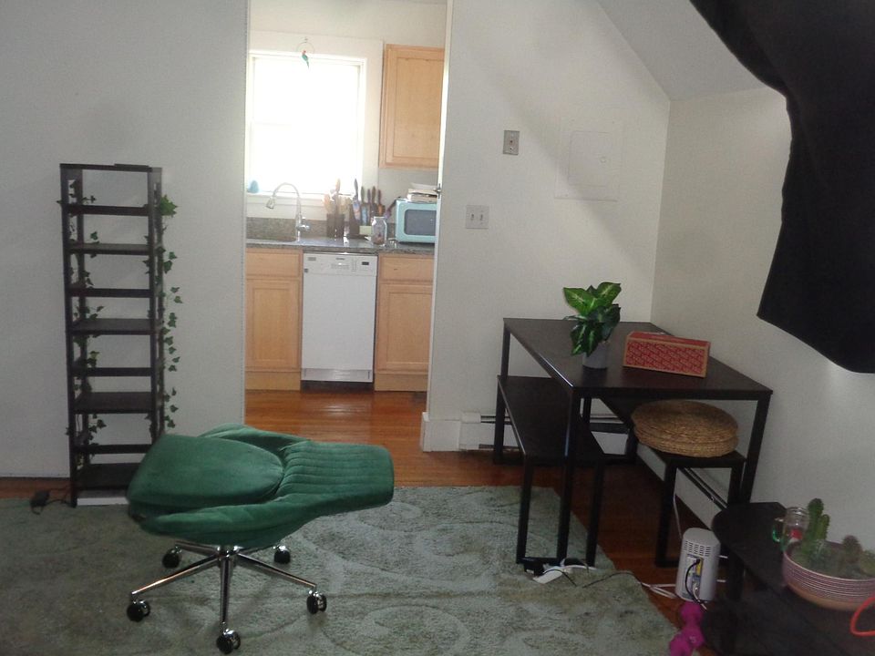 North Beacon St and Market St location, 1 bedroom and living room, galley kitchen with refrig., Electric stove, D/W, hdwd floors, 1 full bath, 3rd floor of 3 family house, coin- op laundry, shared yard, parking- one car optional for $100 per month extra, some utilities included, available 7/1/22