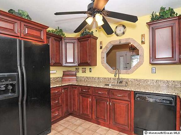 Beautiful renovated ranch in desirable Monmouth Heights. Expanded foyer with ceramic tile. Kitchen with Cherry wood 42" cabinets, granite counters and upgraded appliances. Formal living room with wood burning fireplace, huge dining room, three bedrooms, two updated baths, den/family room, garage, gorgeous backyard with paver patio and gas line for BBQ. Excellent schools, close to shopping, NYC buses and Rt. 18.