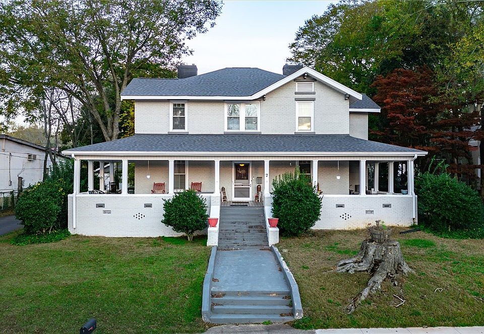 This is the historic home known as "The Baker House"! Totally updated and kept all its historical charm with beautiful beams and gorgeous bead board, plantation shutters, and built-in bookshelves. This home is also disability accessible with ramp entrance in back and wide doorways. A 5-bedroom/2-full bath Craftsman style home with an awesome wrap around covered porch, architectural roofing, and 1-car detached driveway located on a double level lot! There are also 2- separate water meters. Primary bedroom located on the main level and 4 additional bedrooms on the second level. Original hardwood flooring throughout and 5-decorative fireplaces. All rooms are large in size. This is a great place to raise a family! A Must see! All new updates with the provenance of Liberty history! Schedule your private showing today!
