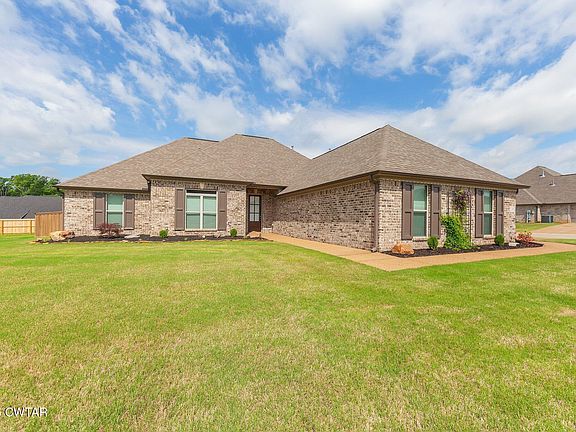Welcome to your dream home! This beautifully designed 4 bedroom residence features an open floor plan, split bedroom plan, lots of natural light and lots of storage. Located in Wyndstone Subdivision, this property boasts a fantastic inground saltwater pool with a mesmerizing waterfall, diving rock, and two cascading fountains on each side providing a serene landscaped oasis in your own backyard. The spacious master suite offers a private retreat with new carpet, an ensuite bathroom, and a large walk thru wrap around closet. The open floor plan seamlessly connects the great room with gas logs to kitchen and dining area creating an inviting space for family gatherings and entertaining guests. A spacious 3-car garage includes a storm shelter providing peace of mind during severe weather. The newly designed front landscaping enhances curb appeal and provides a welcoming entrance. This property combines comfort and luxury with its modern amenities and outdoor entertainment options.