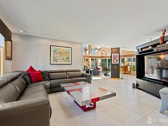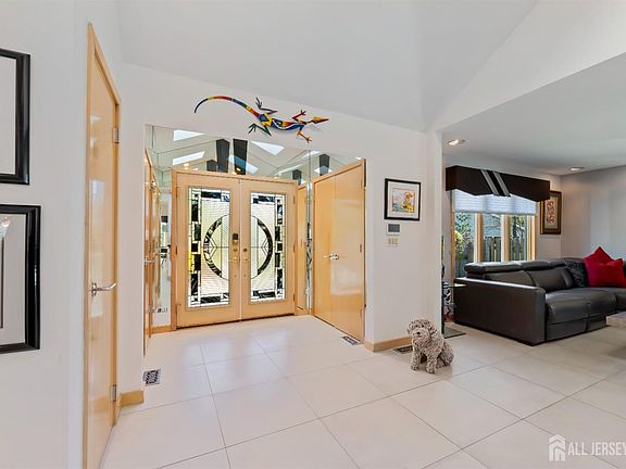Nestled at the end of a tranquil cul-de-sac, this exceptional Northeast-facing residence in the coveted Colonial Oaks community offers an unparalleled blend of elegance, comfort, and style. A stately circular driveway leads you to a grand two-story foyer, flanked by a banquet-sized dining room and a sophisticated formal living room. The expansive great room boasts soaring cathedral ceilings, a skylight, and an abundance of windows that frame breathtaking views of the beautifully manicured backyard. A cozy family room with a wood-burning fireplace seamlessly connects to the gourmet kitchen, a true chef's paradise. Equipped with a striking granite center island, pendant lighting, Insta hot water under sink, two sinkerator garbage disposals, and top-of-the-line stainless steel appliances, this kitchen is designed for both beauty and function. The first floor also features a private bedroom suite, perfect for guests or multi-generational living. Upstairs, the elegant primary bedroom offers dual walk-in closets and a luxurious private bath complete with a soaking tub and separate shower stall. Three additional spacious bedrooms, each with track lighting, share a beautifully appointed main bath. The fully finished, waterproofed basement is a true entertainer's dream, featuring a wet bar, a full bath, a recreation room, three working sump pumps, and a custom wine cellar that will impress even the most discerning connoisseur. Step outside, where the true magic of this home unfolds. A picturesque, tree-lined, and fenced-in backyard offers the ultimate in outdoor living, with a stunning 2-tiered patio, a Tiki bar, an outdoor kitchen with premium finishes, an in-ground saltwater pool, a fire pit, and even a Cabana with a heated bathroom and outdoor shower. Additional features include a 3-car fully shelved garage with ceiling racks, new outdoor glass railings and fence, a whole-house generator, a computerized sprinkler system, and much more. Ideally located for convenience, this home offers easy access to NYC buses, major routes like Rt 18, Rt 1, and the NJ Turnpike. Explore the vibrant Downtown New Brunswick, Rutgers University, and top-tier hospitals, while being surrounded by shopping, dining, and recreational options. Top it all off with the renowned Blue Ribbon Schools of East Brunswick, right at your doorstep. Experience the pinnacle of luxurious living in this exceptional home!