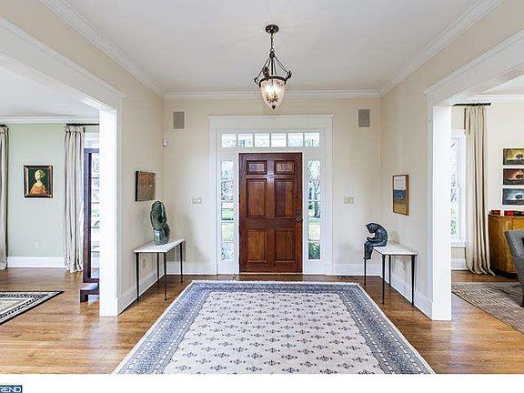 Spanning 4 beautifully landscaped acres, this stone-front Center Hall Colonial presents the discerning buyer with a world-class residence and magnificently appointed grounds. Through the portico entryway, a dramatic foyer includes a graceful staircase framed by an archway. In the living room, a marble fireplace complements divided-light windows, fashioning a social area which is both sophisticated and inviting. 9 ceilings and hardwood floors flow into the dining room showcasing French doors into a nicely-appointed Butlers pantry. In the gourmet kitchen, granite counters refine custom cabinetry and Chefs grade appliances, creating a stylish gathering place when hosting parties. Walls of glass surround the breakfast area and display elegantly tiered gardens and blue stone walkways. French doors open into a family room warmed by a stone fireplace and built-ins. A study boasts an antique fireplace mantel. Upstairs, the master suite proffers a sitting room, two customized walk-in closets and separate marble bathrooms joined by a marble steam shower. Three spacious ensuite bedrooms complete the level. The finished lower level offers a 1500 bottle wine cellar, fitness room, and recreation area. For outdoor entertainment, a delightful pool house with a full bath services the sparkling in-ground pool and spa. Near to downtown Princeton.