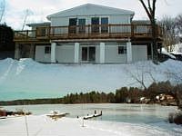WATER FRONT HOME! Vacation every day in this contemporary ranch style home w/breathtaking views of Peters Pond. This home has been extensively remodeled w/ newer kitchen, granite countertops open to DinRm w/HW floors. LivRm has beautiful views and access to wrap-around deck. Full bath has Jacuzzi style tub. Oversized Master w/new carpet and cathedral ceiling. Additional 994+/-SF in walk-out lower level includes FamRm, BR and full bath. 180 ft water frontage and state registered dock. Vacation...
