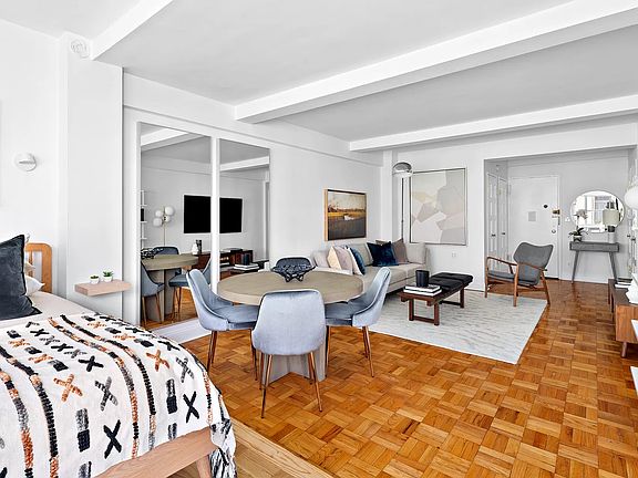 Situated in arguably one of Manhattan's best locations, where Gramercy and Union Square come together, is residence 5F at 7 Lexington Avenue. Just precious steps away from the famed Gramercy Park and near all of life's modern conveniences. The Park Gramercy is an extremely well-run & respected condop. This building is not a land lease and is operated like a condo which permits subletting, pied-a-terres, parent's purchasing for children and no board interview for approval. 5F is a generously sized studio that boasts beautiful, Northern light through the morning and afternoon. Upon entering, you're greeted by the expansive foyer with three storage closets. The living area provides a comfortable amount of space for a formal living room set up and dining area, suitable for up to 6 of your closest friends or family members. Just past the living and dining is the designated, raised sleeping area. This area boasts enough space for a queen sized bed and additional furniture and has incredible tree-lined street views. The windowed kitchen features a Premier 4 burner gas stove, GE dishwasher, granite countertops, and plenty of upper and lower cabinetry. Off of the entry is a dressing room, which can be utilized as a home office or easily converted to a dressing area. Tucked away is also the sizable bathroom, complete with tub & shower. The Park Gramercy is located on Gramercy's most beautiful intersection, just up the street from Gramercy Park. With transportation easily accessible by the 6,N,R,W,Q, and L trains, and dining at some of the city's finest establishments such as The Gramercy Tavern, Novita, and Ampersand. Built in 1951, this highly-cared-for condop offers top of the line service with 24-hour doorman, roofdeck, bike storage, and laundry facilities. A residence with unlimited flexibility for renting and flexible rules on ownership like 5F does not come along very often!