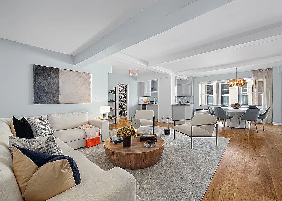 CONDO RULES WITH NO MORTGAGE TAX! Gorgeous in Gramercy Park in this corner spacious penthouse atop the notable Park Gramercy. A sprawling layout punctuated by large windows facing west and north allows gracious living and entertaining. The open windowed kitchen is elegantly updated with classical finished including beveled marble counters, glossy milled cabinetry, and appliances from Miele, Viking, and Sub-Zero. Windowed bath features a step-in glass shower, pedestal sink, and crisp black-and-white details. Finally, the oversized bedroom has a corner of windows, multiple closets and plenty of space for study and reading nook. Through-wall air conditioning and multiple walk-in closets. Just one flight upstairs, The Park Gramercy offers a delightful furnished roof deck with sweeping metropolitan views both uptown and down. The building, which has NO BOARD APPROVAL, features gracious marble lobby attended 24 hours a day and a marvelous super. Subleasing and parents buying with/for children permitted. This special home at the foot of Lexington Avenue is a stone's throw from the most famous private park and checks every box.