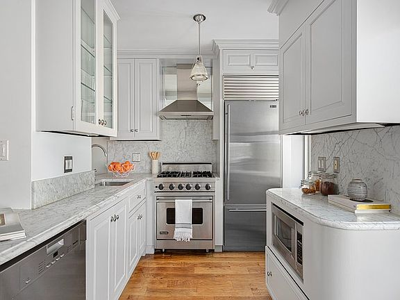 CONDO RULES WITH NO MORTGAGE TAX! Gorgeous in Gramercy Park in this corner spacious penthouse atop the notable Park Gramercy. A sprawling layout punctuated by large windows facing west and north allows gracious living and entertaining. The open windowed kitchen is elegantly updated with classical finished including beveled marble counters, glossy milled cabinetry, and appliances from Miele, Viking, and Sub-Zero. Windowed bath features a step-in glass shower, pedestal sink, and crisp black-and-white details. Finally, the oversized bedroom has a corner of windows, multiple closets and plenty of space for study and reading nook. Through-wall air conditioning and multiple walk-in closets. Just one flight upstairs, The Park Gramercy offers a delightful furnished roof deck with sweeping metropolitan views both uptown and down. The building, which has NO BOARD APPROVAL, features gracious marble lobby attended 24 hours a day and a marvelous super. Subleasing and parents buying with/for children permitted. This special home at the foot of Lexington Avenue is a stone's throw from the most famous private park and checks every box.