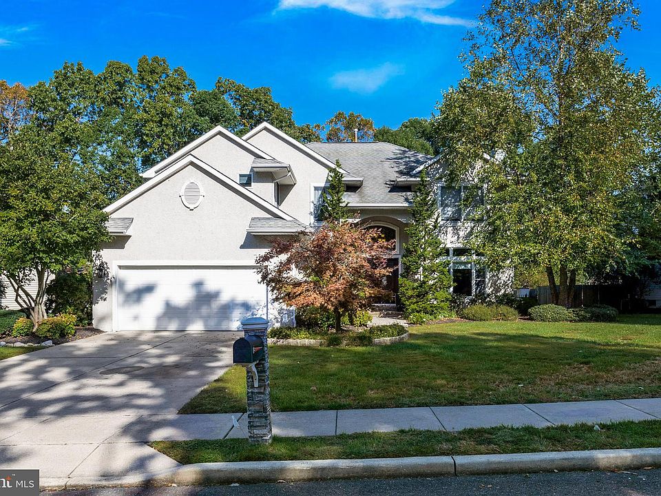 This is a beautiful place to call home. It's located on a level lot, surrounded by landscaping and mature trees, and the quiet street affords you lots of privacy. There's something for everyone in this 3,600 sq. ft. 4 Bed, 4 Bath transitionally styled home with a partially finished basement. The stucco facade with multiple roof lines and double door entry welcomes you from the curb. A concrete driveway leads to the 2 car front entry garage and a paver walkway is your passage to the covered front porch. You'll find lots of space in the fenced rear yard, where there's space for the family and pets to play and you relax and enjoy life on the custom, raised, paver patio. Your interior is showcased by an open and bright floor plan, with great gathering spaces and quiet hideaways. An elegant foyer, soaring ceilings, neutral decor, hardwood, LVP, and ceramic tile on the main, upgraded millwork, zoned HVAC, 2 gas fireplaces (1 in the Living Room and 1 in the Family Room); dual staircases; designer light fixtures, a fantastic upgraded Kitchen with cream cabinetry, tiled floor and backsplash, granite and full stainless steel appliance package. There's a center island for meal prep, serving, and casual dining. You'll also love the Breakfast Bay with large windows for you to enjoy the outdoors as you sip your morning coffee. The Kitchen enjoys connectivity to the Family Room, making it a great space for family time spent together, or as the perfect are for entertaining. Sliding glass doors provide direct access to the patio and backyard. Another great entertaining feature. Work or study from home in the oversized office located on the main. Access your upper level from either staircase and you'll find a large overlook, carpeted bedrooms including a grand Owner's suite with a gorgeous coffered ceiling, chandelier & walk-in closet, and a luxurious all upgraded new bath with on trend soaking tub, ceramic wood look floor tiles, a tiled spa shower, high profile dual vanity & private toilet. Your remaining bedrooms have ample closet space and share a well-appointed main bathroom. Add a partially finished basement for extra, flexible living space, lots of storage throughout the home, and you have the home to make your dreams come true. Centrally located near major highways in every direction, minutes from restaurants and shopping, highly rated Mount Laurel Schools, parks, and recreation areas. You've been searching for the right home and now you've found it!