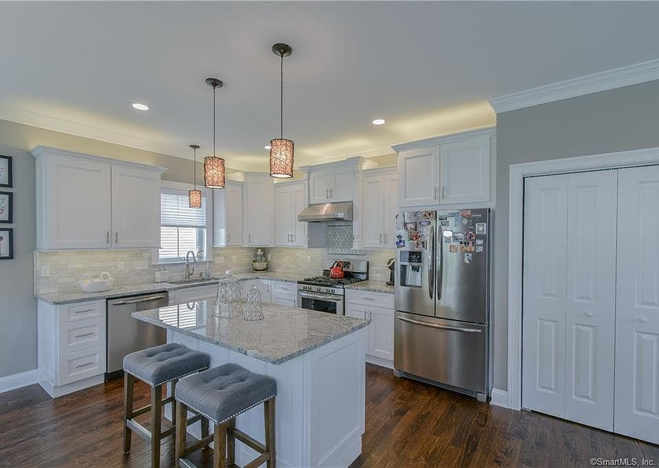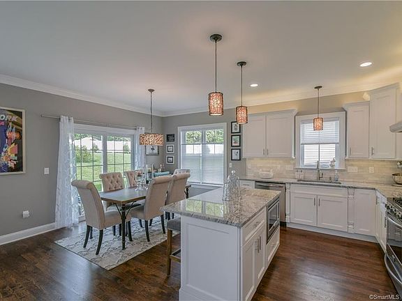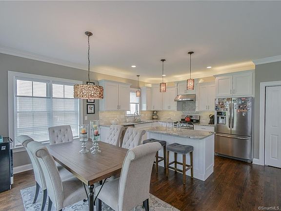 This Spectacular home in North Havens premier subdivision, Lexington Gardens, was once the builders model home featuring numerous custom upgrades located in the most PRIME location. Upon entering you will find professionally landscaped manicured grounds surrounding the home with a rear expanded 11x14 patio. This home features a modern open concept kitchen, dining room and living room with sliders leading to the patio, perfect for entertaining. The kitchen features many upgrades including White cabinets with soft close drawers, large central island with built in cabinets and microwave along with a breakfast bar with seating. Under and over cabinet lighting, wide plank hardwood flooring, gas fireplace, recessed lighting, and spacious 1/2 bath complete the first floor. The second floor features 3 spacious bedrooms including a master bedroom with large walk in closet , master bath with double vanity and full tile shower, and a spacious landing perfect for a sitting area or office area. Additionally this home has a 2 car garage, gas heat, central air, city water and city sewer! The upgrades in this home are not to go unseen!
