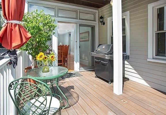 Location: Historic Lexington Street in desirable gas light district only steps to Monument Square and a short walk to shopping and restaurants. A completely renovated bi-level condo in a standalone building with four-side exposure, soaring ceilings and historic detail including original wide pine floors and wood burning fireplace. The home has covered deeded parking for two cars and an expansive back-yard lawn that offer an unusual opportunity for easy city living. Plant your flowers, bring your pets and invite your guests as the yard has plenty of space for outdoor entertaining. The first-floor features windows galore, a chef’s kitchen with window, granite counters and maple cabinets; a guest bath with stunning tile and glass door shower, a guest bedroom and access to an unfinished basement. Crown moldings in the living and dining rooms lead to transom windows over sliders which open to a private deck perfect for barbecue and al fresco dining. The second floor features a new rubber roof (and no upstairs footsteps), a large master bedroom suite with marble bath and granite counters, lots of closets and French doors to private balcony that is perfect for morning coffee or sunset cocktails. Two zone central AC, gas heat, internet ready rooms, private laundry, large basement storage with workbench and an outside storage shed completes this unique condo located with a view of the Bunker Hill Monument.