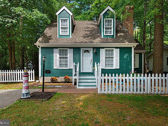 Williamsburg in Ocean Pines! Charm abounds throughout this property, both inside and out! Picket Fencing, Brick Front Walkway and Chimney, Twin Dormer Windows, Paved Drive, and Slate Patio. Freshly Painted interior and exterior, brand new carpeting upstairs. First Level includes hardwood flooring, Brick & Wooden Fireplace Mantle, Sunroom, Dining Area, Bedroom, and Bath with unique double vanity. Granite Countertops, Stainless Steel Appliances, Tile Backsplash, Tray Ceiling and a Breakfast Bar all highlight the Kitchen. Generously sized bedrooms for square footage. Both upstairs bedrooms have walk-in closets. A 12x15 Trek Deck with Vinyl Railings, and a Storage Shed with Workbench complete this adorable home!