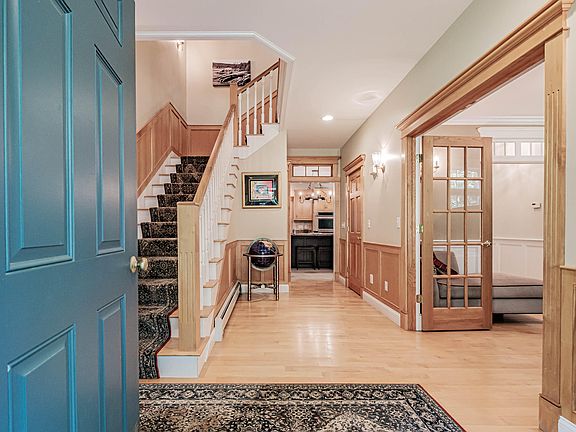 Remarkable builder's home centrally located in the heart of town. The last home on a private 2.4 acres, this Colonial offers over 6,000 feet of finished space. First floor with a gracious center hall with exceptional woodwork. First floor office with fireplace, music room, open custom kitchen with expanded dining space. Center island in the well appointed kitchen is ready for all occasions. First floor living room with fireplace and recently installed heat pump. Second floor offers 4 bedrooms including a large master bedroom suite with heat pump. Additional room for extra flexible space space. Third floor loft makes a great office, reading or guest space. Lower level features a theatre room plus daylight walkout. Room for working out, then transition to your very own pub!