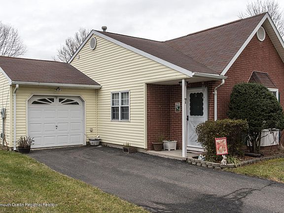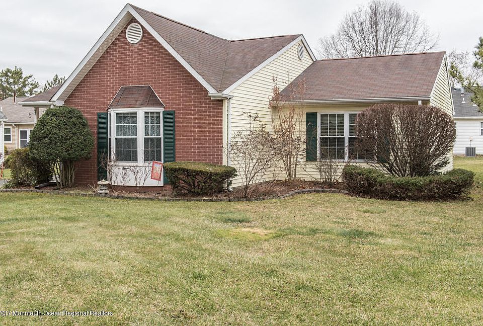 This sought after Greencastle model is just what you have been looking for! Beautiful brick front.Spacious open floor plan. Living room with vaulted ceiling, adjacent to Dining room. Kitchen with separate dinette area and newer stove. Master Bedroom is quite roomy with plenty of closet space and your private Bath. Off the Kitchen is Sitting/TV room with Sliding glass doors which lead to our private patio. Also features Second bedroom, laundry room and Garage. Location features much larger more spacious lot. Low taxes & low maintenance fees. Clubhouse for socializing with many activities! Beautiful outdoor pool,tennis court & shuffle board. 1 Year AHS Home Warranty included.Close to Mall, Shopping and Rt 9. Make an appointment today!