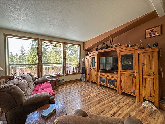 Gorgeous views from this 2008, well laid-out, double-wide mobile home on a permanent foundation. Great room floor plan with large kitchen, including island with loads of storage and a nice sized living room with three oversized windows toward the Cabinet Mountains. Great master suite with soaker tub. Nearly 2.5 acres, mostly level with some really nice mature trees and a wrap-around drive. Need a machine shed for your outdoor toys or car collection, this property may be for you. Several sheds are on the property for storage, one with a sauna. Shop envy is imminent when you enter the uninsulated, concrete floor shop, ready for your workshop or storage for your recreational toys. The property is between Trout Creek and Thompson Falls, just off of Highway 200 and Little Bear Lane, with Whitepine Creek and Beaver Creek canyons just across the highway and up the road and ready for you to explore. A property with a lot of potential. Call for a showing today.